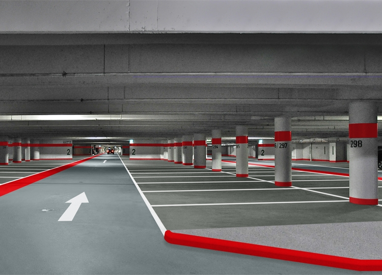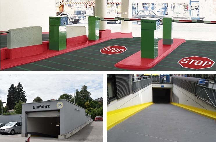 A rámpák, orsók és felhajtók a parkolók legerősebben használt területei közé tartoznak. Felújítás esetén itt különösen fontos a rövid zárási idő a használat veszteségének minimalizálása érdekében. A Triflex mechanikailag rendkívül rugalmas rendszermegoldásokat kínál, amelyek megfelelnek e különösen sűrűn frekventált területek magas követelményeinek. A gyors kikeményedésnek köszönhetően a többszintes parkoló már néhány óra elteltével újra használható